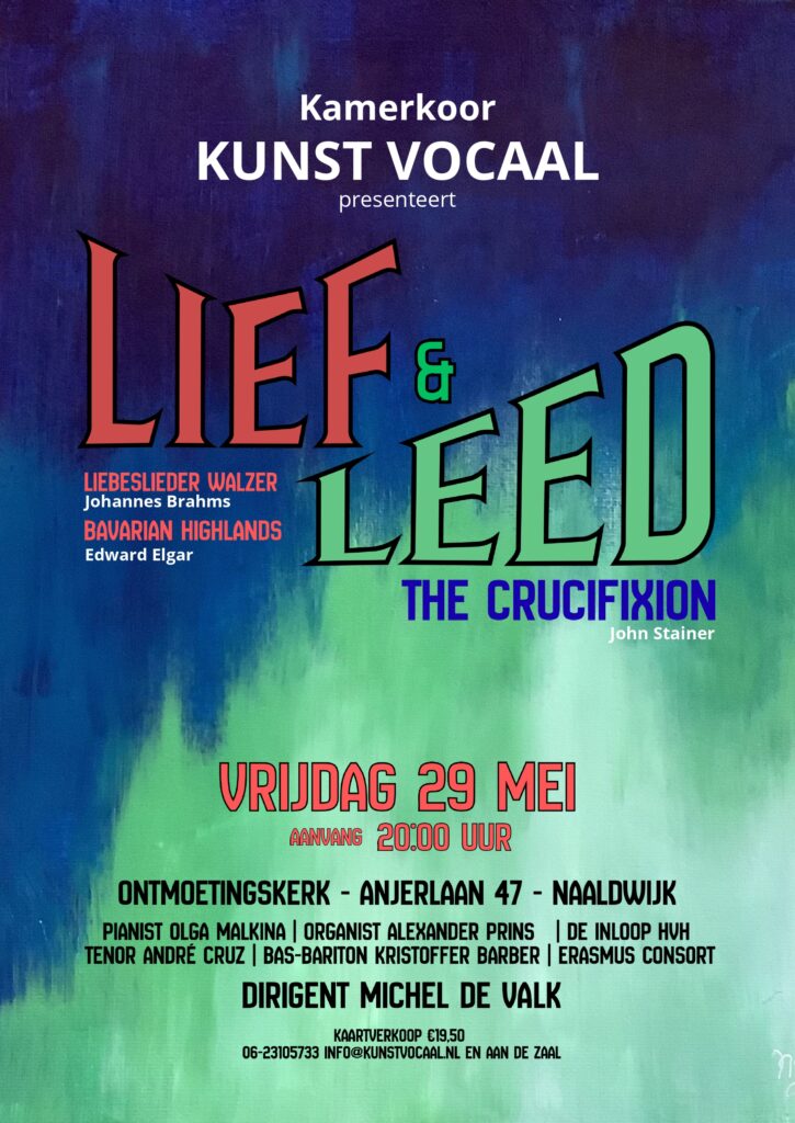 Kunst Vocaal is een gemengd koor uit het Westland. We zingen gevarieerde muziek, in het algemeen klassiek of ‘hedendaags’ klassiek, maar ook een volksopera heeft recent nog op ons programma gestaan. We zijn niet verbonden aan een religieuze groepering, maar willen wel getuigen van maatschappelijk engagement. Ons koor bestaat momenteel uit zo’n dertig enthousiaste leden, van alle leeftijden en achtergronden, die van zingen houden en het gezellig vinden om elkaar wekelijks tijdens de repetitie te ontmoeten. We repeteren elke maandagavond in Naaldwijk (m.u.v. de maanden juli en augustus) en geven normaliter eenmaal per jaar een concert.